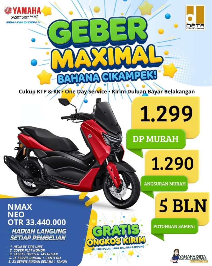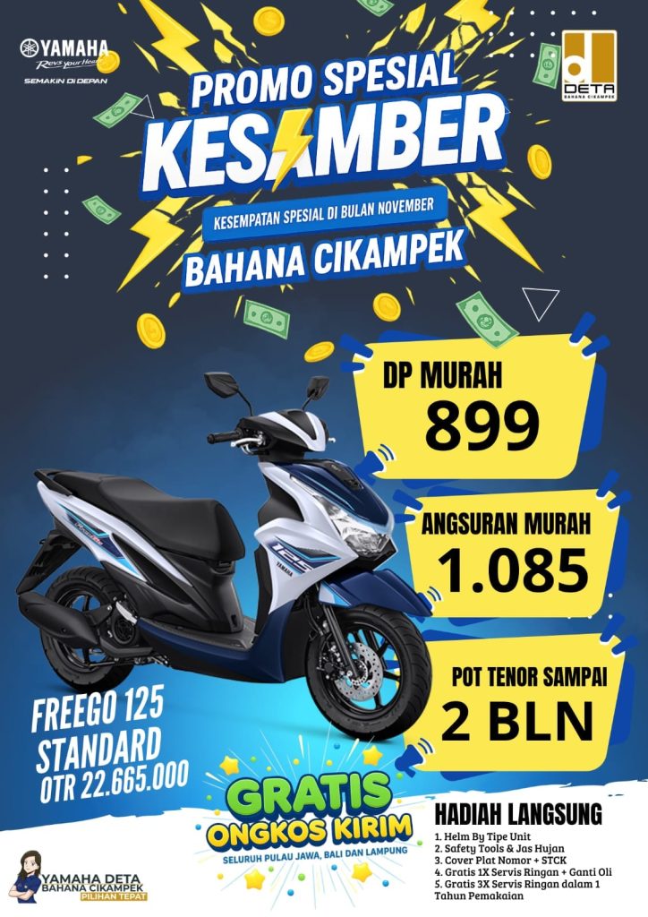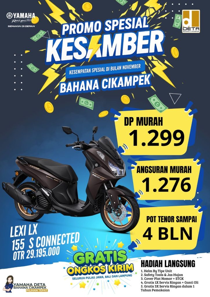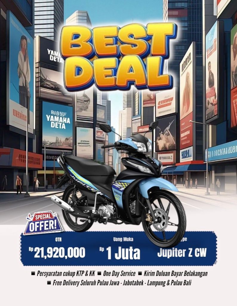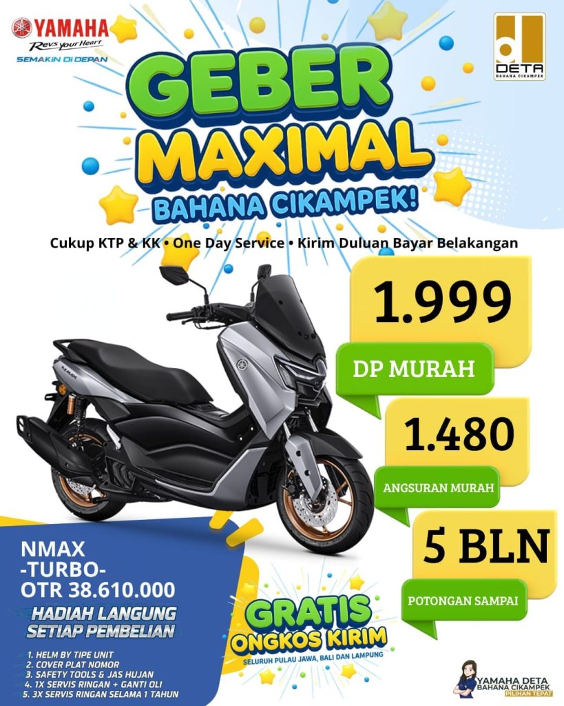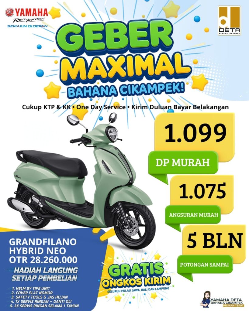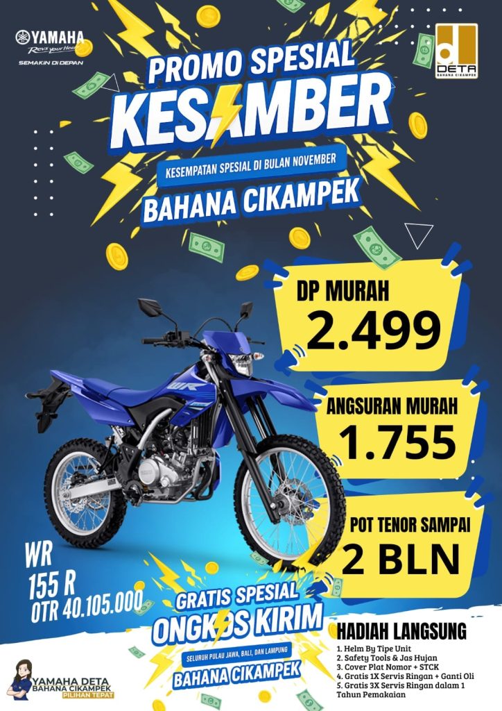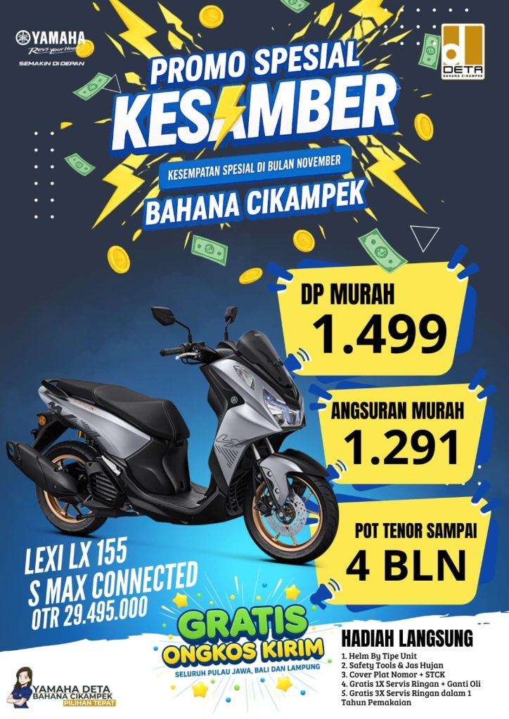 Yamaha Bahana Karawang Official (Deta Group) adalah salah satu dealer resmi Yamaha Indonesia terbesar dan terpercaya di wilayah Jawa Barat. Melayani seluruh area dengan komitmen memberikan kemudahan dalam pembelian sepeda motor Yamaha secara online melalui situs resmi kami. Temukan berbagai pilihan produk unggulan dan promo menarik yang tersedia untuk setiap unit.